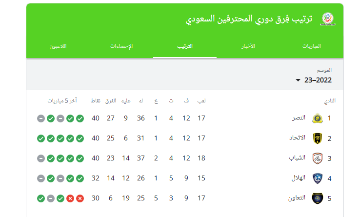 ترتيب الدوري السعودي 2022_2023