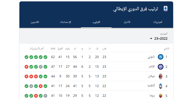 بعد فوز إنتر ميلان على ضيفه أودينيزي.. ما هو ترتيب فرق ترتيب الدوري الإيطالي 2022_2023؟