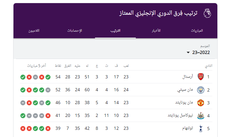 بعد مبارة ارسنال.. ما هو ترتيب فرق الدوري الإنجليزي 2022_2023؟