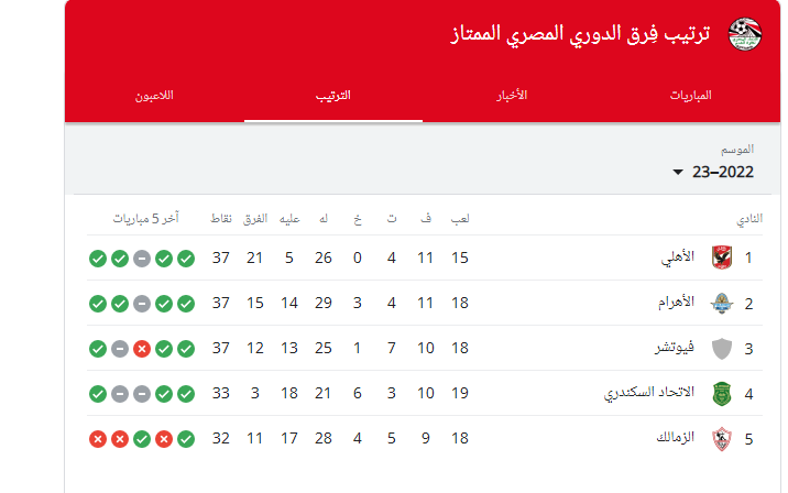 بعد تحقيق الاتحاد السكندري فوزا هاما على الداخلية.. ما هو ترتيب الدوري المصري الممتاز؟