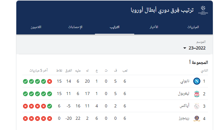 ترتيب فرق دوري أبطال أوروبا بعد مبارة بورتو البرتغالي