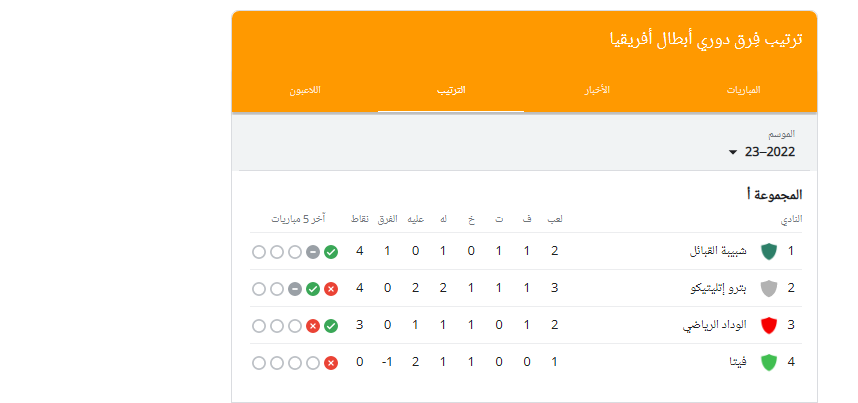 بعد مبارة الهلال السوداني.. ما هو ترتيب منافسات دوري أبطال إفريقيا 2022/2023؟