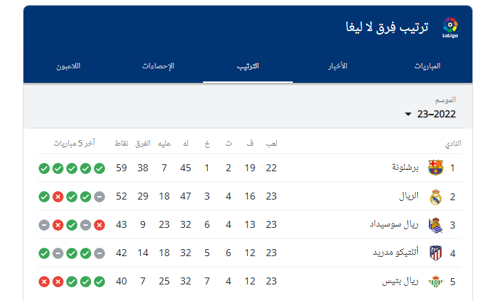 ترتيب الدوري الاسباني 2022_2023.. وروبرت ليفاندوفسكي في صدارة الهدافين